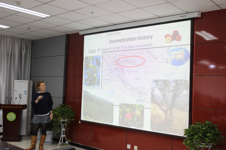 10月20日下午,法国科学研究中心Amandine Cornille博士来公司进行交流,并在207会议室作了“Processes of divergence in apples: histories of speciation, phylogeography and domestication of apples”的学术报告,报告会由韩明玉教授主持,公司果树系师生参加了会议。