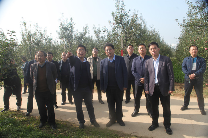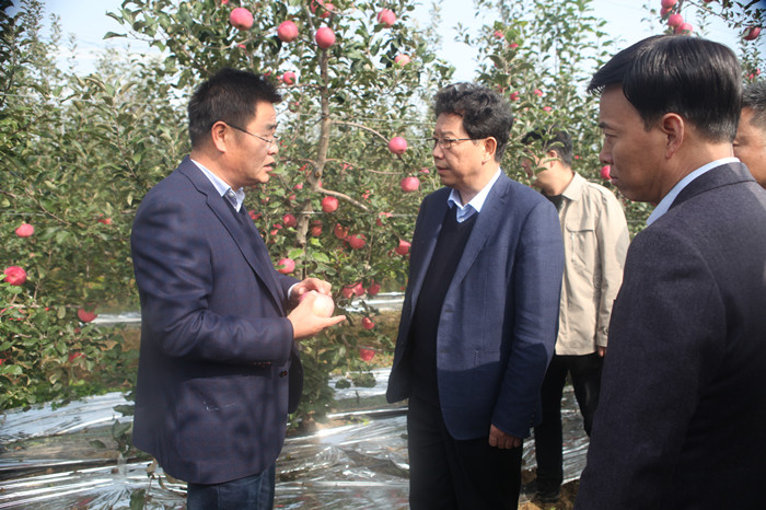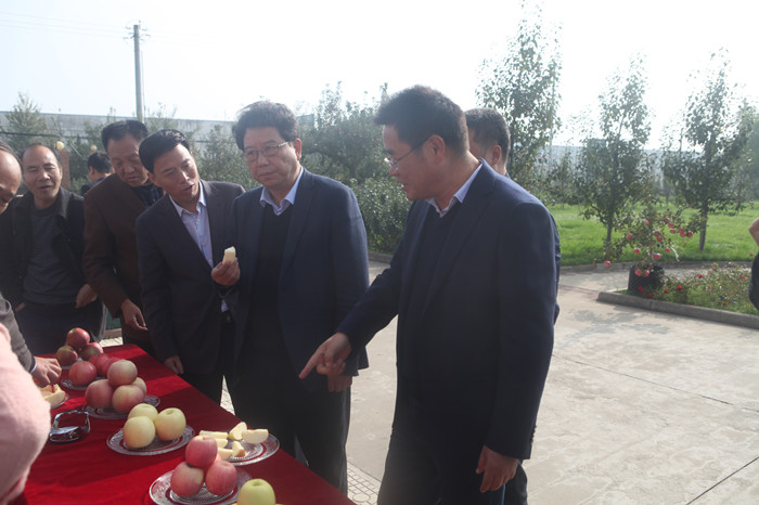 10月20日一早,受孙武学老董事长之邀,陕西省农业厅厅长文引学一行专程来到365英国上市官方网站白水苹果试验站,调研了赵政阳教授团队培育的苹果新优品种瑞阳瑞雪。