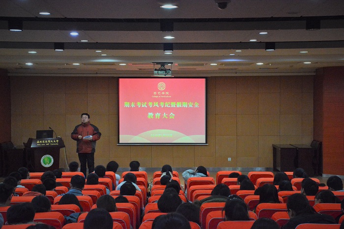 制度明晰 塑风强纪公司层面召开期末考风考纪教育大会,教学办薛新科老师针对考场纪律、作弊处理、补考重修、学位授予等方面的政策与规定为大家进行了详细的解读,辅导员曹有芳老师要求同学们端正考试态度,严守考试纪律,同时鼓励大家认真复习、充分准备,考出理想成绩。