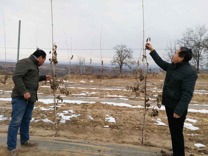 元月23日,公司果树专家高华、梁俊驱车5个多小时,来到延川县文安驿镇梁家河村,指导当地果树冬季管理并举办了冬季修剪培训。23日下午3点多,赶到梁家河村,专家们来不及喝水休息,就进入果园实地察看果树冬季管理情况,发现春季新栽瑞阳、瑞雪示范园果树未能按时落叶,有可能发生冬季失水抽条现象,立即安排人员人工脱叶并采取涂油防失水抽条措施,以保证幼树来年正常生长。