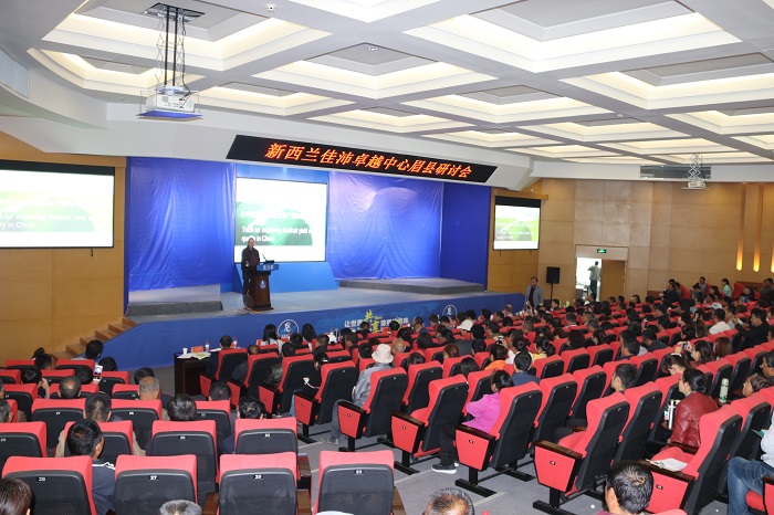 本次研讨会主要围绕如何借鉴新西兰猕猴桃生产的先进经验,提升中国猕猴桃产量、品质、优化生产力、品种评估等方面进行了交流研讨。由眉县人民政府副县长赵晔致辞,新西兰植物食品研究院高级科学家Mike Currie、Kevin Patterson,佳沛全球生产技术总监Shane Max、陕西佳沛泽普果业有限公司项目总监Nick Kirton等分别做了“改善猕猴桃产量和质量的技术报告”、“优化猕猴桃生产力报告”、 “霜冻防控措施”、“陕西猕猴桃长势提升之路”、“品种评估”等交流报告。新西兰专家与猕猴桃试验站专家和参会猕猴桃技术人员、果农等进行了充分交流,对于了解学习新西兰猕猴桃先进的果园管理技术,提升猕猴桃作务技术水平具有很大帮助。
