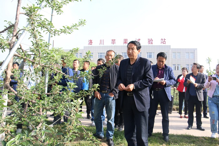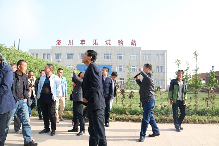 近日,由共青团延安市委、延安市农业局共同举办的延安市苹果产业后整理现场观摩培训会暨青年农场主技术比武活动在洛川县召开。观摩培训团成员第一站来到公司洛川苹果试验站。试验站站长安贵阳研究员首先介绍了试验站基本情况,结合此次大会的宗旨,重点介绍今后苹果种植产业转型升级的方向——矮化栽培;并且对今年4月6号冻害之后的补救措施进行介绍与答疑。