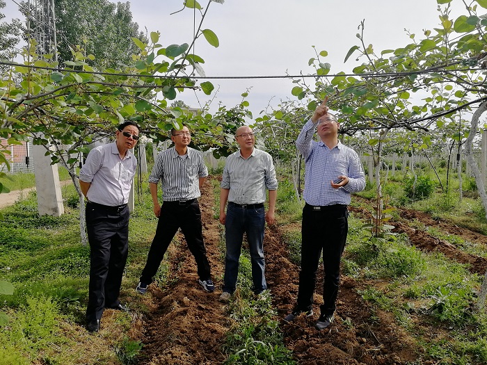 4月27日,猕猴桃试验站首席专家刘占德研究员、郁俊谊研究员陪同公司原董事长孙武学对“4·7冻害”中受灾严重的猕猴桃果园进行调研,详细了解了各受灾果园受灾情况及灾后树体恢复情况,希望广大果农树立信息,积极落实灾后救灾技术措施,促使树体恢复,将受灾损失减到最低。