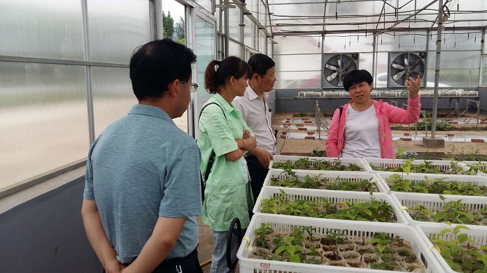 试验站驻站专家姚春潮研究员向客人介绍了猕猴桃试验站的基本情况,并陪同参观了苗木扦插嫁接试验、猕猴桃种质资源圃和栽培新技术研发区。双方就猕猴桃新品种选育、苗木繁育、砧木选择和有关栽培技术进行了交流。