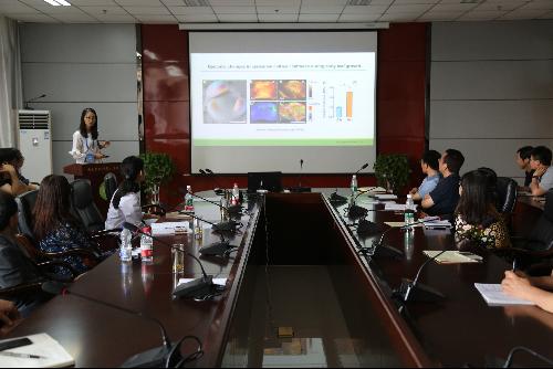 马锋旺经理主持报告会,参会各位老师和同学就报告的内容、科学研究的选题、国外科研体制和合作机制等方面进行深入交流和讨论。
