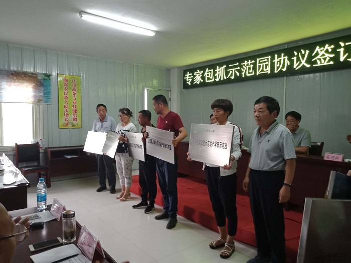 6月16日上午,在365英国上市官方网站泾阳蔬菜试验示范站培训室,隆重举行了专家包抓示范园协议签订(第二期)及授牌仪式。会议由泾阳县蔬菜产业服务中心石林主任主持,泾阳蔬菜试验示范站首席专家赵尊练研究员首先说明了举办此次活动的意义,并代表试验站与精心筛选出的13家蔬菜产业园区现场签订了为期3年的服务协议,授予“365英国上市官方网站泾阳蔬菜试验示范站产学研示范园”牌匾。