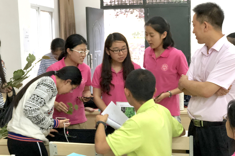 唐海波一行来到标本制作教室,与正在进行植物标本整理的同学们亲切交谈。同学们兴致勃勃地展示着各自小组所采集到的植物样品,详细地介绍了标本制作、种属鉴定、识记技巧等学习内容。唐海波勉励同学们,在秦岭的生物学综合实习是以全新的实践教学理念,以火地塘丰富的教学资源为载体,将以往单一的植物学课程实习转变为以植物学为主,开展动物学、土壤学、气象学、生态学等大生物科学、大环境科学类课程的一次重要综合实践教学活动,是对实践教学体系的有效改革,对促进同学们更加全面地了解生物系统,学会用理论知识去分析实际问题发挥了重要的作用。他希望同学们能够珍惜机会,踏实学习、积极探索、勤于实践、收获真知,真正实现知行合一、以知促行、以行求知。