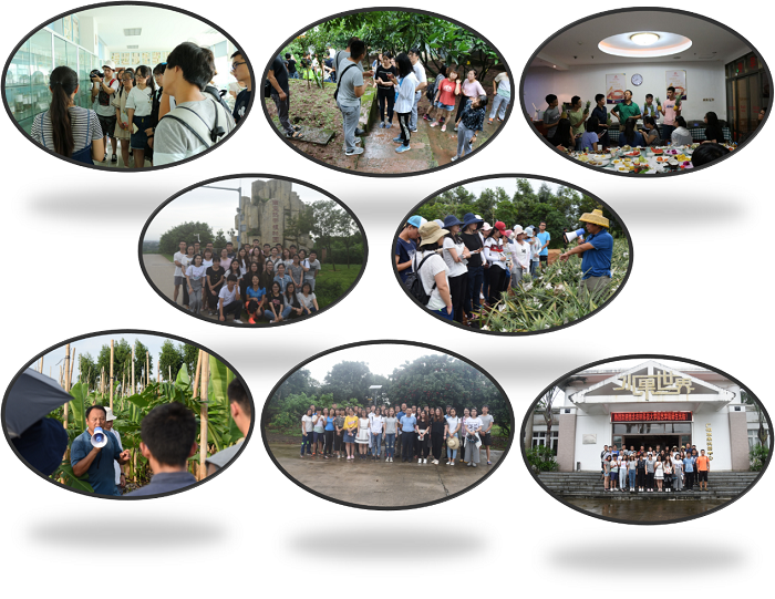 员工们先后参观了位于重庆市北碚区中国农业科公司柑桔研究所(西南大学柑桔研究所)、四川广安柑桔产区、广东湛江南亚热带作物研究所、鲜果乐园休闲农场、南亚热带植物园、徐闻菠萝、香蕉产区、“茂名水果试验场”区域示范基地、广州水果世界等地区。中柑所,在贺老师的带领下学习了柑桔常见的病虫害种类及其防治措施,并参观了资源圃中柑桔保存品种。四川广安,员工们走进武胜脐橙、龙安柚产区,规模化种植映入眼帘。广东湛江,同学们进行了南方水果品鉴,大家品评了番石榴、菠萝、火龙果、山竹、荔枝等20多种水果。南亚热带作物研究所、鲜果乐园休闲农场、南亚热带植物园,孙老师带领大家学习夏威夷果、芒果栽培产业现状以及管理技术,参观了莲雾、番石榴、芒果、菠萝、火龙果、黄皮果、桃金娘、蛋黄果、鹰嘴桃、柠檬、杨桃、印度樱桃、诺丽果、毛叶枣、番荔枝等资源保存圃。徐闻菠萝、香蕉产区,员工们参观了中国最为壮美的菠萝种植景观带——“菠萝的海”以及遭受台风后与未遭受台风的香蕉园。“茂名水果试验场”荔枝、龙眼生产及新品种区域示范基地,正逢荔枝成熟时期,同学们直接从荔枝树摘成熟的荔枝吃,新鲜甘甜。广州水果世界,讲解员带领同学们学习了葡萄嫁接步骤,参观了葡萄避雨栽培、设施荔枝以及设施无花果栽培。