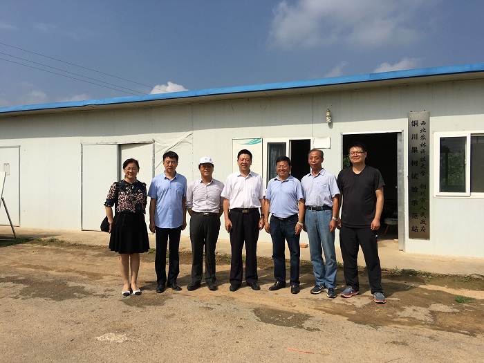 铜川市政府副秘书长李忠宏(中)、甘肃考察团领导与公司试验站专家合影
