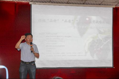 蔡宇良教授针对我国樱桃产业发展现状、品种选择、市场分析及樱桃栽培管理技术等方面作了主题培训。会议期间,蔡宇良教授解答了种植户提出的问题,并详细讲解了适宜陕西地区耐寒耐旱抗根癌砧木品种马哈利CDR-1、早中晚熟代表品种以及樱桃根癌病、早期落叶病、樱桃果蝇的防治等关键技术。