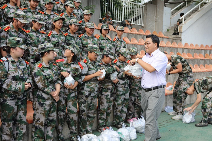 公司的领导老师也对新生军训高度重视。早在军训开始前的8月26日,公司党委书记黄德宝、党委副书记唐海波一行专程前往宿舍看望新生,亲切地与新生进行交流。9月3日上午,公司领导将公司科研成果之一——夏黑葡萄带到了军训场,不仅让公司的科研成果切实惠及到了每一名新生,更让新生们深切感受到公司的关怀,增加自身的专业认同感、专业自豪感。相信每一名新生在之后的训练以及学习生活中也必将带着这份认同感与自豪感取得更多佳绩。