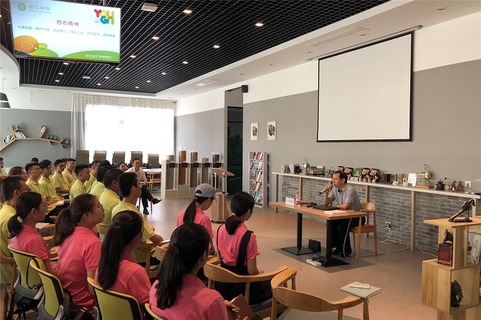 引导团学骨干坚定理想信念,筑牢思想根基,将“西农精神”首先在他们心中根植、开花、传播,是组织、引导、服务青年,弘扬主旋律,传播正能量的重要载体和有效途径。公司党委常委、宣传部部长闫祖书为团学骨干们作了“西农精神”专题报告,结合个人经历及公司发展历史,生动地阐述了“大学文化”与“西农精神”的深刻实质与丰富内涵,勉励同学们在知识结构和人格塑造的关键时期,要自觉践行“爱国,立志,求真,力行”的八字真经,坚定“四个自信”,坚守理想信念,做“西农精神”的学习者、传播者和践行者。
