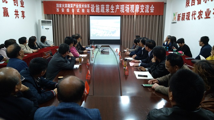 10月18日,由国家大宗蔬菜产业技术体系西安综合试验站主办,大荔县设施农业局承办的“设施蔬菜生产现场观摩及新技术交流会”在大荔县举办。大荔县副县长张红林、农业局局长杨占盈、公司西安综合试验站主要成员及大荔设施农业局、榆林农科院、泾阳、汉中、太白农技推广中心等5个示范县(区)的技术骨干、大荔县蔬菜专业合作社和涉农企业负责人等50多人参加了会议。