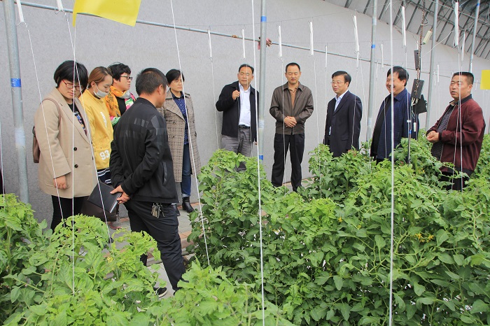2-大荔县副县长张红林(右3)、农业局局长杨占盈(右2)及专家们观摩新颖现代农业园区智慧农业温室蔬菜种植 (3)