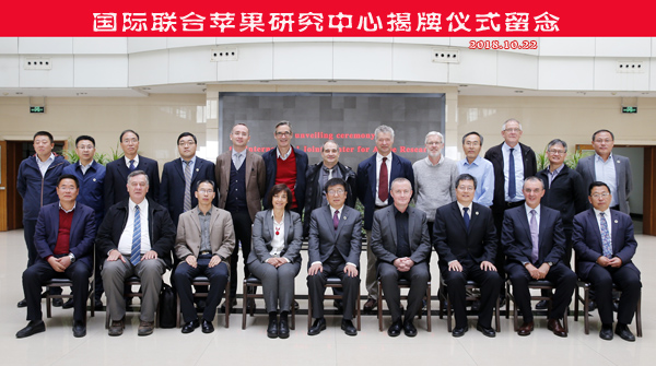参加国际联合苹果研究中心揭牌仪式的来宾合影留念