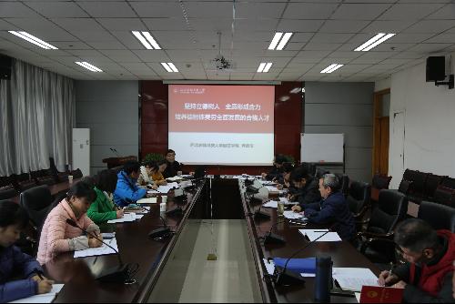 他结合公司实际工作,针对高校如何实施新时代立德树人工程进行深入解读。强调要在坚定理想信念上下功夫,要在厚植爱国主义情怀上下功夫,要在加强品德修养上下功夫,要在增长知识见识上下功夫,要在培养奋斗精神上下功夫,要在增强综合素质上下功夫,着力解决“培养什么人、怎样培养人、为谁培养人”的核心问题。大力培养德智体美劳全面发展的合格人才。同时,他结合在教务处的工作经验,指出了公司当前在教育理念上存在的问题,并提出了改革与建设思路。他要求,广大教职工要把全国教育大会精神内化于心、外化于行,并作为自己的行动指南,在平凡的工作岗位上为公司“双一流”建设贡献自己的力量。