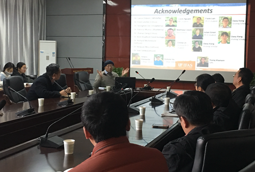 12月13日,美国佛罗里达大学(University of Florida)助理教授Heqiang Huo(霍合强)博士应邀来院进行学术交流,为公司师生做了题为“Genetic improvement of horticultural crops through QTL mapping and biotechnological tools”的学术报告。会议由公司副经理徐凌飞教授主持,公司教师和研究生100余人聆听了讲座。