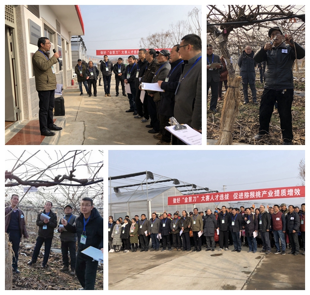 为了进一步规范和提高猕猴桃冬季修剪技术,推进猕猴桃标准化规范生产,2019年1月11日,2018猕猴桃“金剪刀”冬剪技术比武大赛在公司眉县猕猴桃试验站举办。40名参赛选手及评委专家、试验站专家和研究生共60余人参与了本次活动。