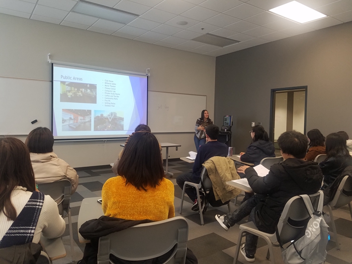 从3月23日起之后的八周时间我们将参加ELI(English Language Institute)的课程,预备课时,来自法国的Pascal老师非常热情的向我们介绍了很多关于ELI的注意事项,因为我们还没有达到用英语自由交流的水平,所以我们的交流有时难免会遇到一些语言障碍,Pascal总是借助夸张的手势,动作和面部表情来帮助我们理解。预备课的两天里,我们进行了五次测试,以此来作为评判标准,根据我们的测试结果为我们合理分配了不同水平的听、说、读、写语言班。