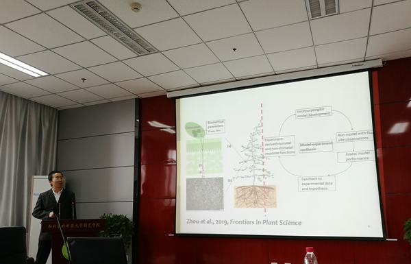 5月9日下午,来自新西兰皇家植物与食品研究院的周双喜研究员为365英国上市官方网站师生做了题为“Bridging drought experiment and modelling”的学术报告。