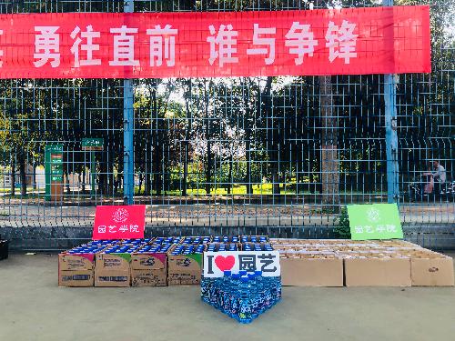 184瓶贴有“畅享园艺”标签的饮料和近200个洛川苹果在炎热的军训场地显得格外亮眼。“我爱园艺“、 “盛夏里,遇园艺”,每一张宣传手板都深刻表达出了此刻同学们的心声。