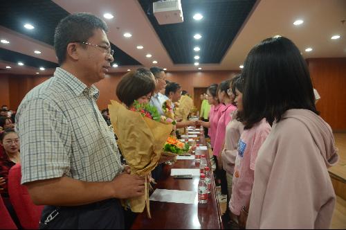 最后,马锋旺经理、黄德宝书记为2019级新生班班主任及班主任助理颁发聘书。恰逢第三十五个教师节,员工代表鲜花赠恩师,深情表达感恩。2019级迎新大会在花香与掌声中落下帷幕。