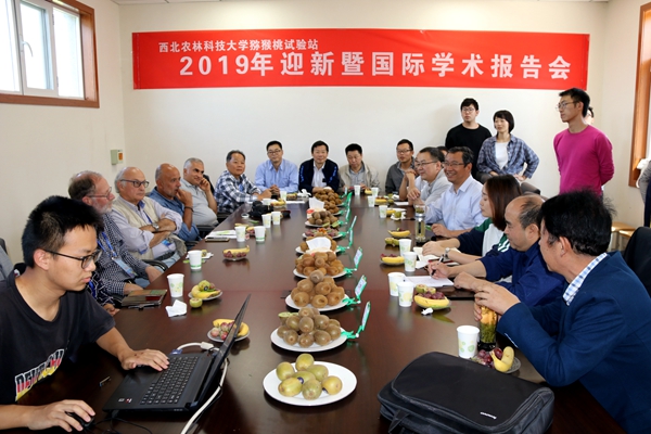9月21日下午,眉县猕猴桃试验站举办了2019迎新暨国际学术报告会。国际知名猕猴桃专家、意大利博洛尼亚大学Gugliemo Costa教授、意大利图斯卡大学Giorgio Balestra教授、韩国全罗南道园艺研究所Youn-Sup Cho研究员、新西兰植物与食品研究所猕猴桃栽培科学家Kevin Peterson研究员、土耳其阿塔图尔克中央园艺研究院Arif Atak研究员、试验站全体老师、全体在读研究生、2019级试验站“现代农业全产业链”专硕及其导师、眉县果业中心技术干部等共50余人参加了活动。