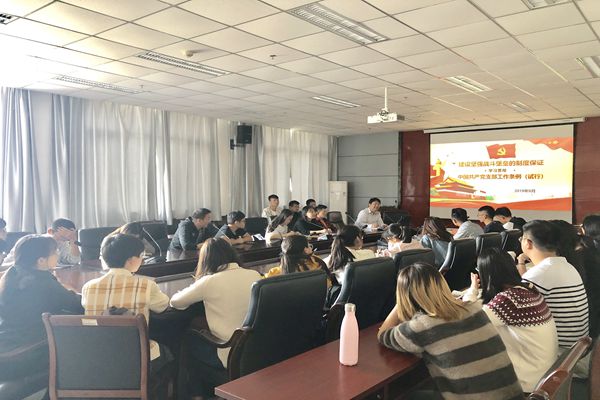 王国晖副书记以《建设坚强战斗堡垒的制度保证学习贯彻中国共产党支部工作条例(试行)》(以下简称为《条例》)为题,结合工作实际,从引言、《条例》制定颁布的重大意义、贯穿《条例》的基本精神、《条例》的基本内容、如何贯彻落实《条例》五方面深入浅出作讲解,引导员工党员不断增强“四个意识”、坚持“四个自信”、做到“两个维护”。员工党员应该对党的知识强读强记,让党的知识往深里走、往实里走、往心里走。全体党员更要虚心学习《条例》,严格夯实发展流程,共同维护《条例》的权威性和严肃性,发挥党员的先锋模范作用与党支部政治堡垒作用,更好地提升党支部活力。