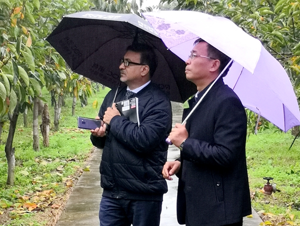 Tahir Khurshid博士还对澳大利亚柿砧木的繁育技术,澳大利亚本土柿品种,柿新品种的引进和鉴定情况进行了介绍,并期望在柿砧木的引种,甜柿优良品种引入,柿砧木的标准化繁育技术等方面与公司进行合作,密切学术科研往来。参会人员就我国甜柿品种资源、生产情况等进行了讨论交流。