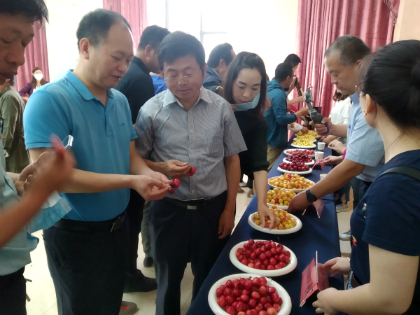 樱桃品鉴环节中共有秦樱一号、短枝艳阳以及引进新品种雷尼、含香、13-33、匈引a等8个品种参与品鉴,其中秦樱一号、短枝艳阳为公司樱桃课题组选育品种。