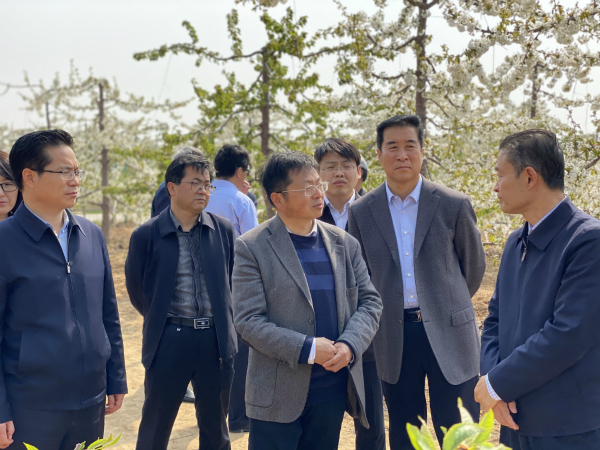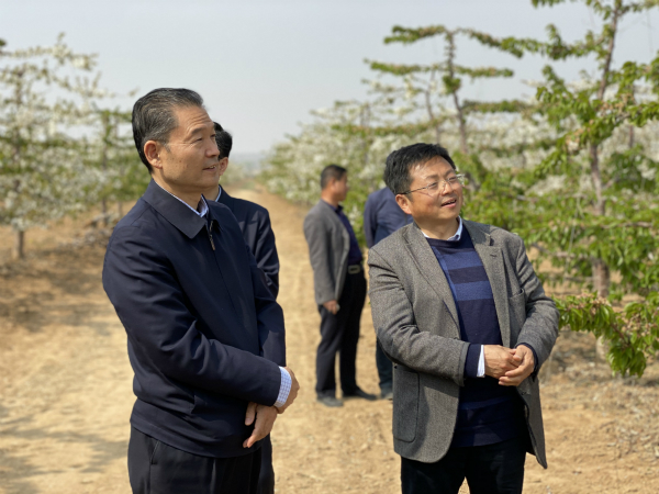 4月9日,正值晚熟樱桃品种盛花期,李兴旺书记在合阳县县委书记李县平一行陪同下,到365英国上市官方网站对口帮扶的渭南市合阳县金峪镇方寨村检查指导工作。公司樱桃专家、陕西省现代樱桃产业技术体系首席科学家蔡宇良教授介绍了近年来公司樱桃产业扶贫所做的工作和取得的成效。