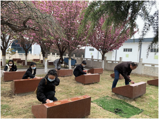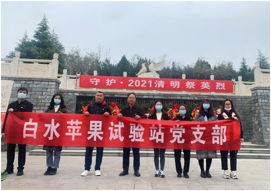4月4日正值清明节期间,为悼念革命烈士,缅怀先贤的丰功伟绩,教育支部党员发扬革命先烈的光荣传统,弘扬民族精神,继承先烈遗志,进一步开展好党史学习教育,白水苹果试验站党支部全体党员师生组织开展了“缅怀革命先烈,弘扬爱国主义精神”的清明节扫墓活动。