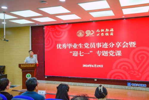 黄德宝同志对五位毕业生党员取得的成绩表达了高度赞扬,看到同学们四年或七年的成长故事他深受感动也倍感鼓舞。黄德宝同志号召同志们积极向优秀的党员同志学习,并结合员工实际提出了几点希望:一是提高党性修养,坚定理想信念,深入学习党的理论知识,始终保持理论上的清醒,做政治上的明白人。二是严守党的纪律,永葆党员本色,筑牢对党真诚,将党员身份意识和宗旨意识内化于心、外化于行。三是勇担时代使命,争做时代新农人,要始终厚植家国情怀,秉承诚朴勇毅的校训,秉持西农精神,不断练就兴农本领,担当强农使命,为加快中国式现代化建设贡献智慧与力量。