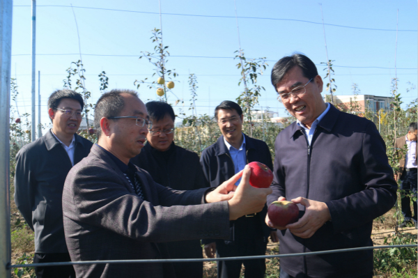 10月17日,江西省委副书记、赣州市委书记李炳军一行来公司洛川苹果试验示范站考察调研。延安市委常委、纪委书记、监委主任曹远勃,洛川县委副书记、县长张继东陪同调研。