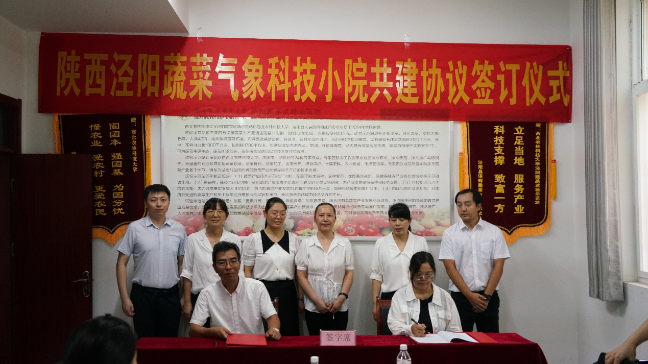 揭牌仪式后,泾阳蔬菜气象科技小院共建单位签署了合作协议,并召开了座谈会。各单位分别介绍了情况和在围绕蔬菜气象方面的最新研究成果,并就共同申报课题、人才培养、实用技术推广、科普宣传、农业气象科技论坛等事宜进行了交流。