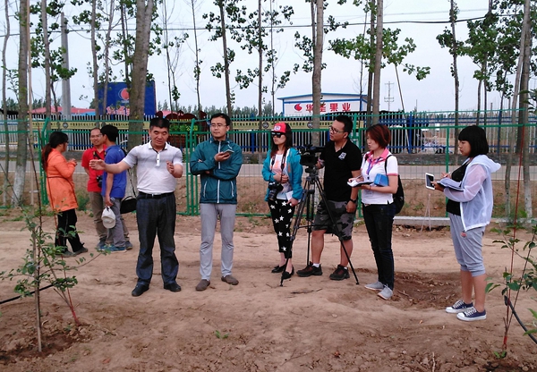 6月7日,由杨凌示范区党工委宣传部崔新谋为团长的“走出杨凌看示范”记者采访团来到宝鸡千阳苹果试验示范站,深入田间地头了解杨凌示范区与公司共建的千阳苹果示范站带给千阳苹果产区的新技术、新成果。采访团成员包括新华社、人民网、新浪网、凤凰网、香港《紫荆》杂志、陕西日报、陕西广播电视台、陕西传媒网、陕西画报、三秦都市报、农业科技报、杨凌电视台等十二个媒体的14名记者。
