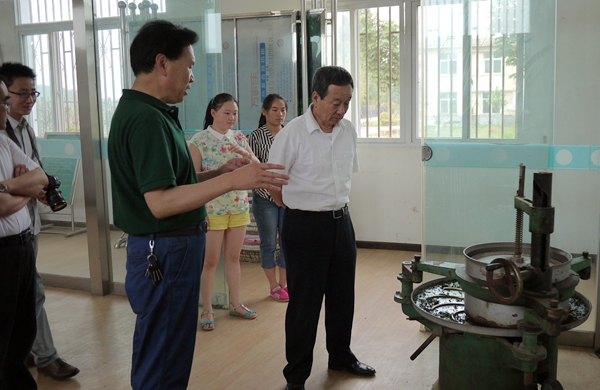 在茶叶加工车间,饶有兴趣的观看了黑毛茶加工过程,并不断询问黑毛茶在加工过程中的变化情况,以及利用陕南夏秋茶制作黑毛茶技术等情况。