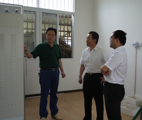 肖斌教授向赵忠常务董事长一行介绍茶试站制作红茶的专利设备-红茶发酵箱