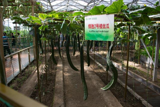 展馆中的管道栽培造型展示