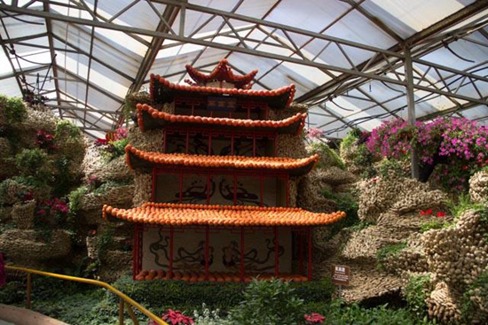 展馆中用蔬菜种子和果实做成的造型展示