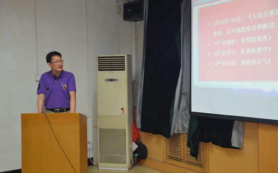 5月19日下午,公司党委书记孙马以《践行三严三实,干好本职工作》为题,为班子成员、党委委员、支部书记、系主任,以及所有管理干部做了第一堂专题党课。