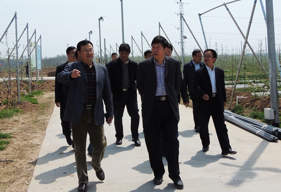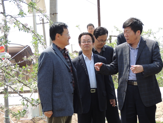 4月25日,陕西省气象局副局长杜毓龙、延安市气象局局长赵榆飞、洛川县气象局副局长高志斌等一行来公司洛川苹果试验示范站,检查指导洛川苹果试验站和延安市气象局合作开展的果业气象研究工作。