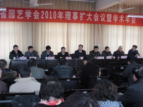 12月18日,陕西省园艺学会在杨凌召开2010年理事扩大会议暨学术年会,陕西省科协副主席党广录,陕西省科协副主席、公司副董事长、陕西省园艺学会理事长王跃进,陕西省园艺学会副理事长、延安市人大常委会副主任张宏,陕西省果业局副局长、陕西省园艺学会常务理事周智孝以及学会理事、部分会员及特邀园艺工作者80余人参加了会议。