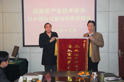 会上,西乡县孟晓东副县长代表商洛、平利、紫阳、南郑、西乡5县县人民政府向国家茶产业技术体系汉中综合试验站赠送了“茶业体系科技进陕南、惠及富硒茶乡千万家”的锦旗。