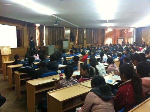 报告会上,王乔春教授通过对北欧的地理环境、人口密度、政治体系、经济发展水平以及各地区的高等教育发展水平等方面向同学们展示了一个经济繁荣、教育水平发达、社会稳定的北欧。随后,王乔春教授详细介绍了北欧各国知名高校,剖析了北欧高等教育的特点。他指出:“北欧高校本科专业设置以综合性教育为主,严格实行学分制管理,员工课余时间丰富,重视体育和操作技能训练。王教授还以图书馆、实验室为例向我们展示了北欧高校拥有丰富的学习资源。鼓励同学们要学习好专业知识,提高英语技能,争取到北欧国家的高等院校继续深造。