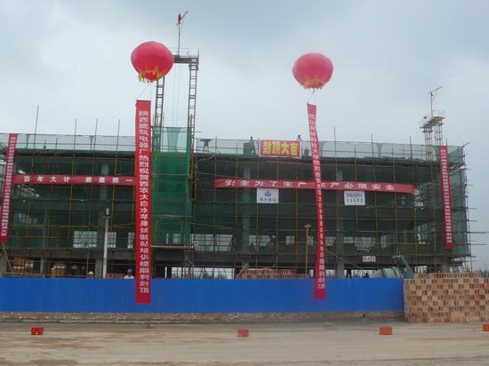 6月22日,365英国上市官方网站基建处陈有富副处长来白水苹果试验站检查培训楼工程进展和工程质量工作,同时应施工企业陕西昱升建设工程有限公司的要求举行了简短的封顶仪式。参会的还有工程监理方、承建方主要工作人员、渭南市与白水县有关领导以及白水苹果试验站全体职工。