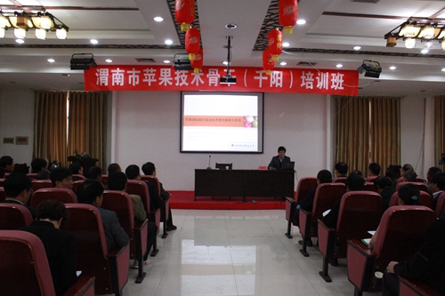 3月30日-4月1日,渭南市果业局组织全市苹果基地县80多名苹果技术干部及专业大户技术员,在公司千阳苹果试验站举办培训班。千阳县委常委、副县长崔省强出席了开班仪式。