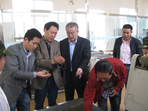 林黎明一行到茶叶试验站加工车间,认真察看了茶叶生产流程,详细了解了公司茶叶生产流水线在陕西茶产业中的示范带动作用,并与试验站实习员工进行交流。