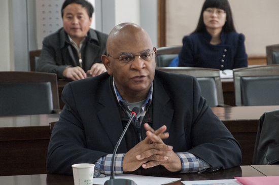 座谈会前,侯曦副董事长会见了美国大学客人。