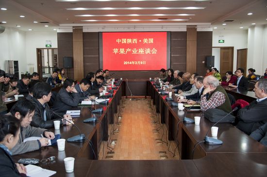3月9日上午,中国陕西•美国“苹果产业发展座谈会”在公司国际交流中心举行。陕西省果业局相关领导、公司果树专家与美国康奈尔大学、加州大学戴维斯分校的苹果产业领域权威专家60余人参加座谈,中美专家就中国陕西矮砧密植苹果产业的推广、发展以及技术要求做了深入交流和探讨。
